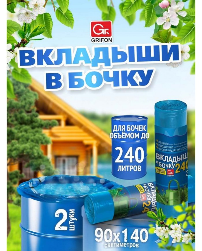 Характеристики: - объем – 240 л, - цвет – синий, - в комплекте – 2 штуки, - материал – ПВД, - длина – 140 см, - высота – 90 см, - толщина – 75 мкм...