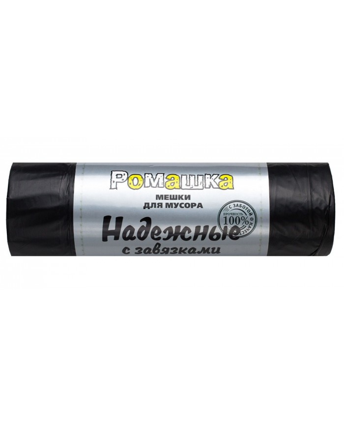 Мешки для мусора с завязками 35 л, в рулоне 15 шт., ПСД 18 мкм, 50x53 см, РОМАШКА НАДЕЖНЫЕ,