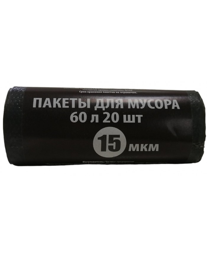 Пакеты (мешки) для мусора 60л 20шт., 15мкр, ПНД