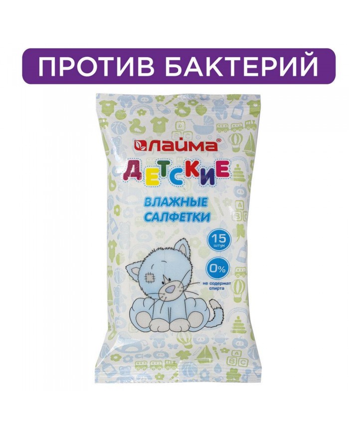 Салфетки влажные детские 15 шт., универсальные очищающие, LAIMA Kids,