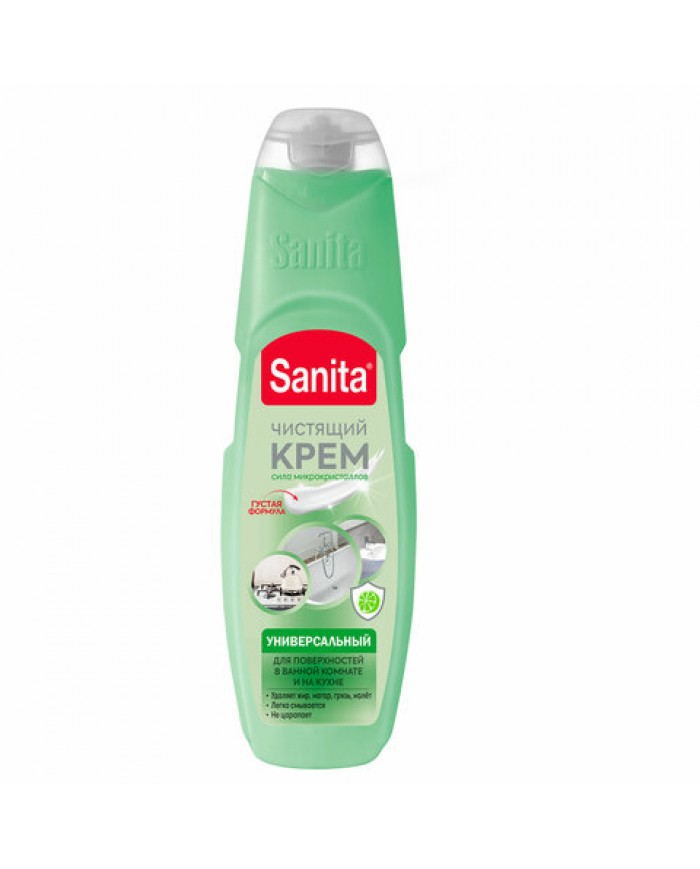 Чистящее средство универс-е крем 600 г,SANITA "Зеленый чай и лайм", д/очистки кухон.повер и сантехн