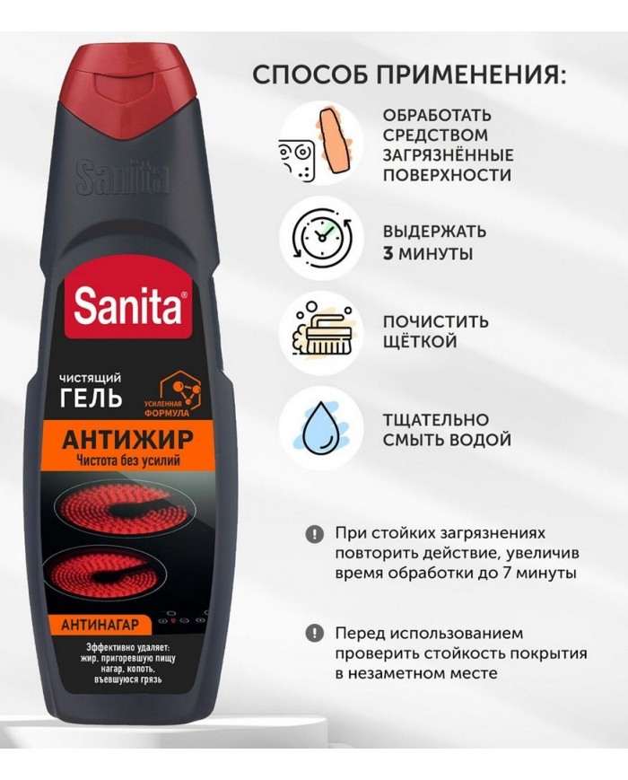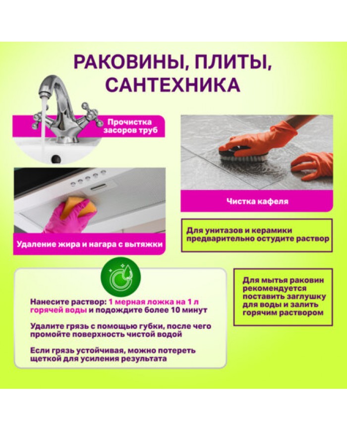 Удаляет жир, нагар, копоть и пригоревшую пищу с эмалированных, хромированных поверхностей, изделий из стекла, нержавеющей стали, фаянса, фарфора. Испо..