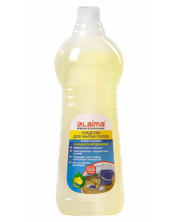 Представляет собой концентрат весом 1 кг. Нейтрализует неприятные запахи, не оставляет разводов. Обладает формулой, не требующей смывания. pH нейтральный, что позволяет чистить любые поверхности: линолеум, паркет, ламинат и т.д. Отдушка "Лимон". Средство работает в воде любой жесткости и температуры. Нетоксично, полностью безопасно при использовании по назначению. Способ применения: развести 60 мл средства на 5 л воды. Не требует смывания. Сильнозагрязненные участки предварительно рекомендуется обработать неразбавленным средством. Для деревянных полов средство применять только в разбавленном виде. Средство работает в воде любой жесткости и температуры. Состав: вода, 5% АПАВ, НПАВ (менее 5%), этиленгликоль, натрий хлористый, цитрат натрия, силикон, парфюмерная композиция, консервант, краситель.