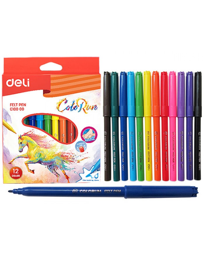 Фломастеры 12 цветов ColoRun, Deli, чернила смываемые, яркие цвета