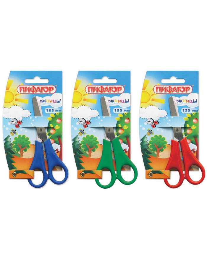 Ножницы ПИФАГОР, 135 мм, с линейкой, цвет ассорти, в картонной упаковке с европодвесом,