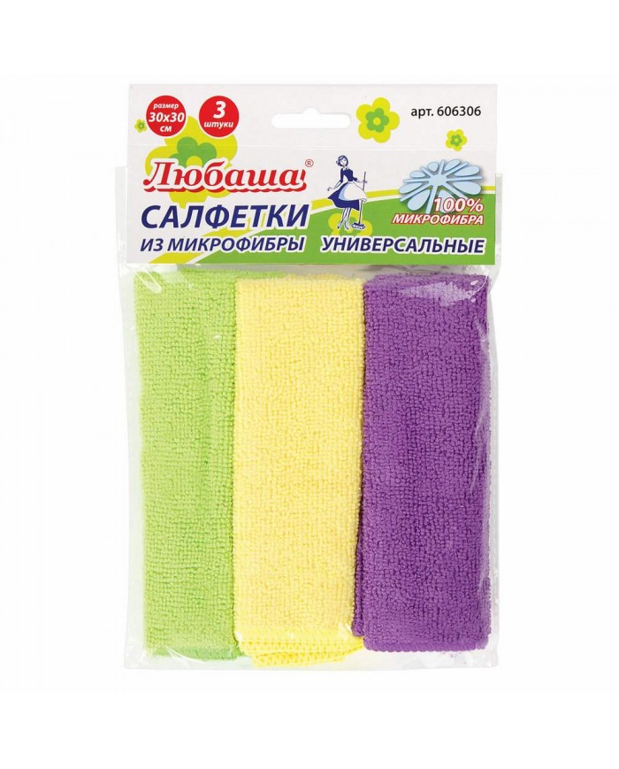 Салфетки универсальные, КОМПЛЕКТ 3 шт., микрофибра, 30х30 см, ЛЮБАША "ЭКОНОМ"