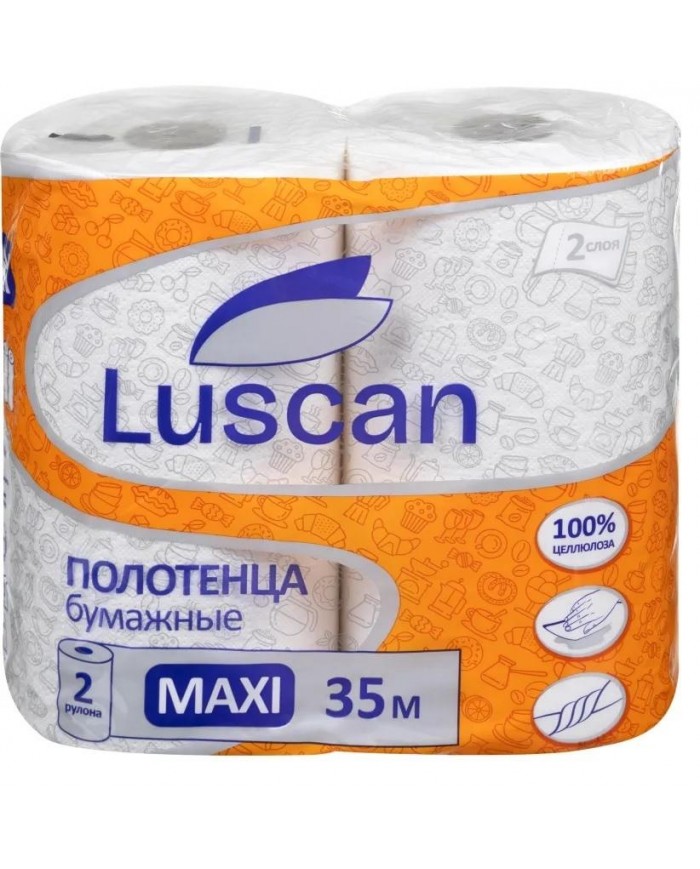 Полотенца бумажные Luscan Maxi 2-слойные белые 2 рулона по 35 метров. Двухслойные бумажные полотенца предназначены для бытового и профессионального применения: высушивания рук, вытирания пролитых жидкостей, полировки зеркальных и стеклянных поверхностей, посуды. Изготовлены из экологичной 100% целлюлозы. Двухслойные полотенца хорошо сохраняют целостность при использовании, не ворсятся в процессе применения, не оставляют разводов после использования. Глубокие линии тиснения обеспечивают надежное соединение слоев, пышность и мягкость полотенец. Размеры: длина рулона 35 м, ширина рулона 22 см, диаметр рулона 15 см, диаметр втулки 4,5 см.