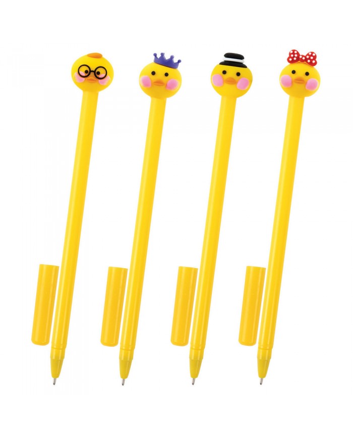 Ручка с топпером шариковая ЮНЛАНДИЯ "Цыпленок", корпус ассорти, СИНЯЯ, пишущий узел 0,7 мм,