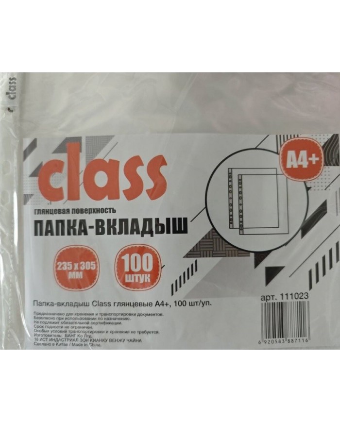Папка-вкладыш Class глянцевые, А4+, 100 шт/уп