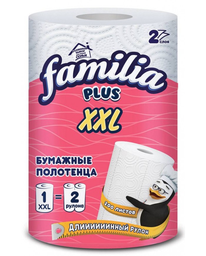 Полотенце бумажное двухслойное 25 метров, FAMILIA "XXL", отрыв 1/2 листа, 100% целлюлоза,