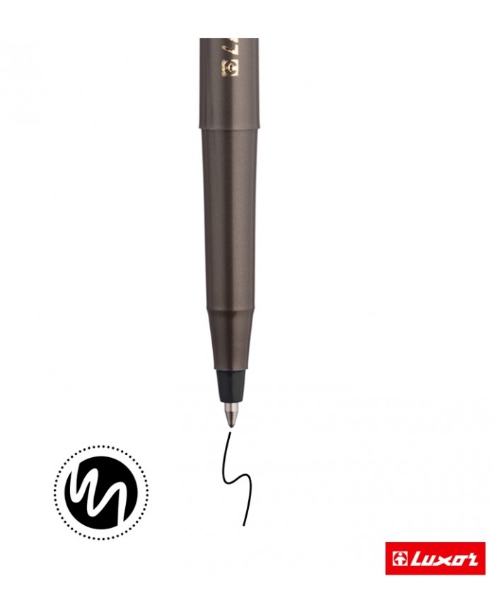 Ручка-роллер Luxor - шариковая ручка с уникальными чернилами на водной основе пониженной вязкости. Диаметр пишущего узла - 0,7 мм, что говорит о том, что изделие подходит для любого типа письма. Толщина линии письма составляет 0,5 мм. Набор из 10 ручек упакован в картонную коробку. Черная ручка-роллер подходит для учебы, работы, для ведения документооборота, заметок в ежедневнике, заполнения личного дневника, рисунков в скетчбуке. Светостойкие чернила на водной основе не выцветают под воздействием солнечных лучей и легко отстирываются с одежды. Благодаря особому строению пишущего узла ручка пишет мягко под любым углом и не царапает бумагу. Чернила мгновенно высыхают на бумаге, поэтому надписи и рисунки не размазываются. Изделие имеет колпачок с металлическим клипом, который позволит прикрепить ручку-роллер к ежедневнику или блокноту и всегда носить её с собой.