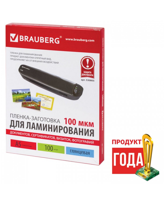 Пленка для ламинирования А5, КОМПЛЕКТ, 100 мкм, BRAUBERG