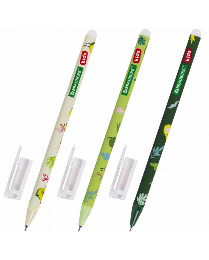 Ручка стираемая гелевая BRAUBERG KIDS "AVOCADO", синий стержень, игольчатый наконечник 0,5 мм, лини