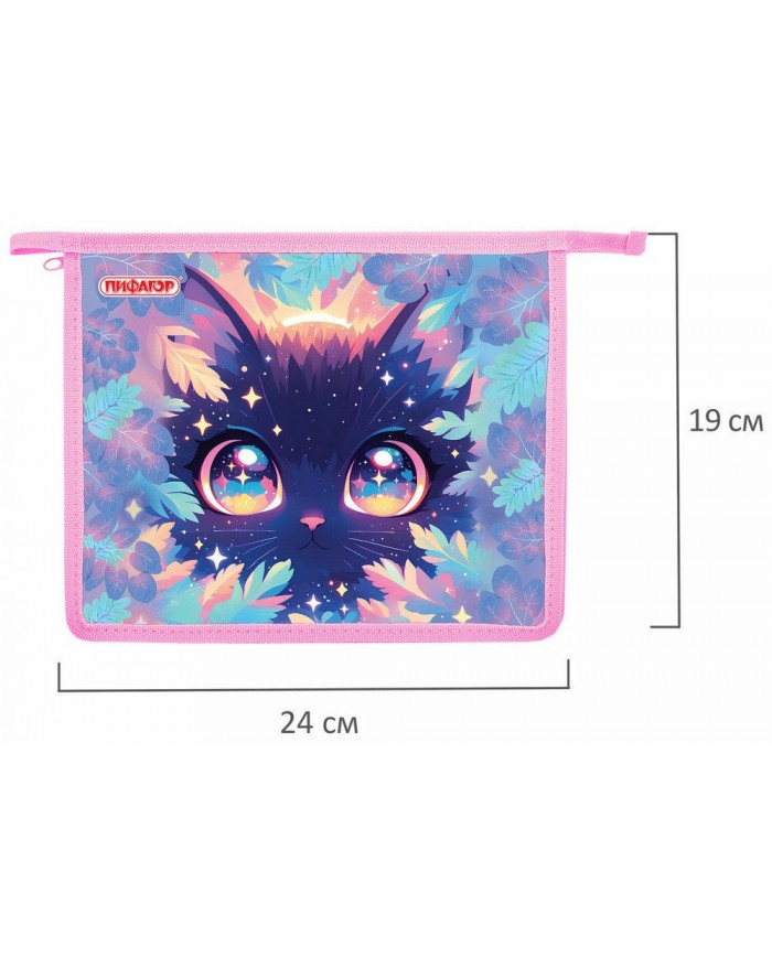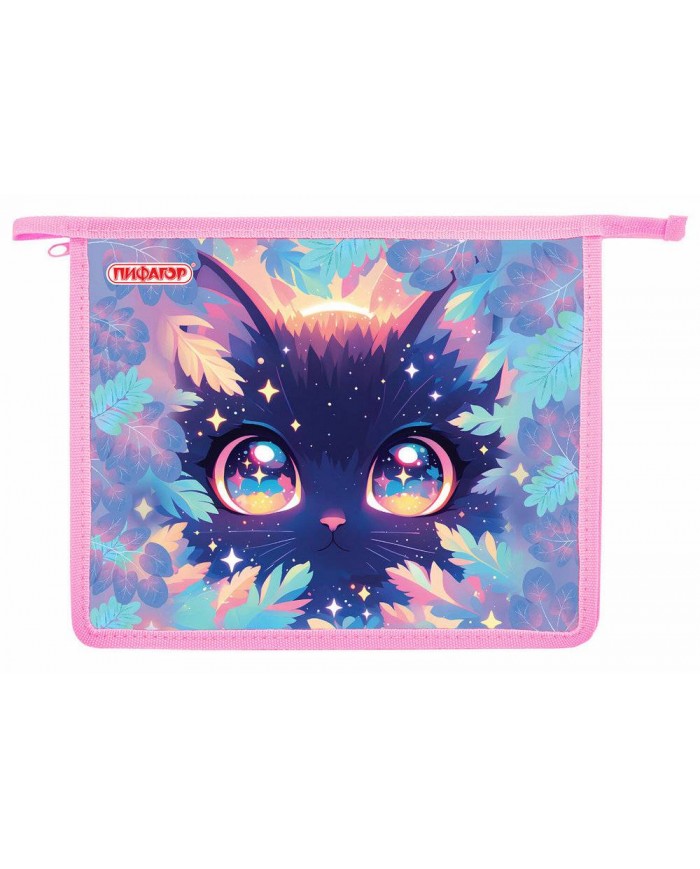 Папка для тетрадей ПИФАГОР А5, 1 отделение, пластик, на молнии, "Magic kitty"