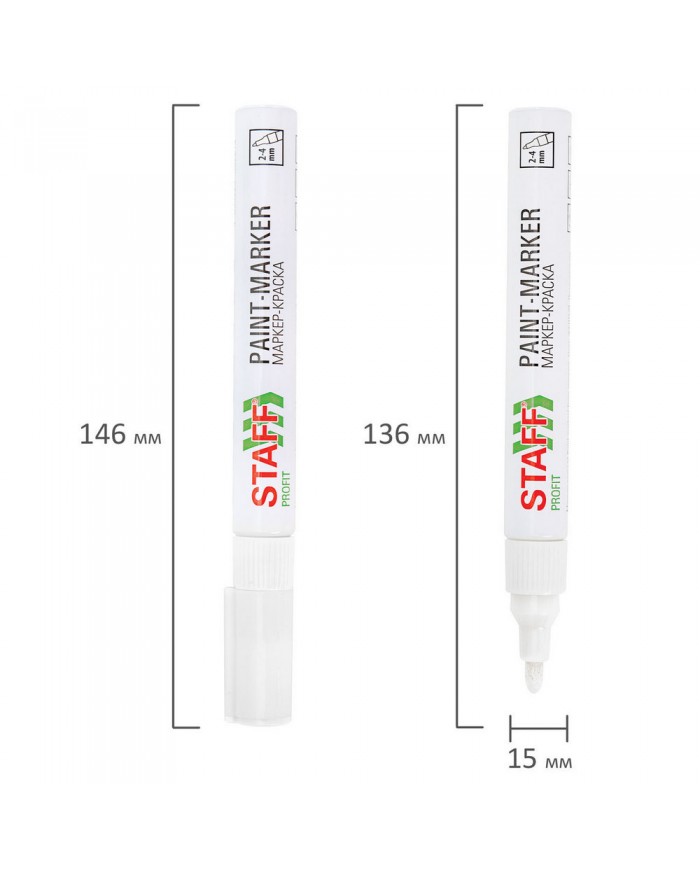Маркер-краска лаковый (paint marker) 2-4 мм, БЕЛЫЙ, НИТРО-ОСНОВА, STAFF PROFIT, для любых поверхн
