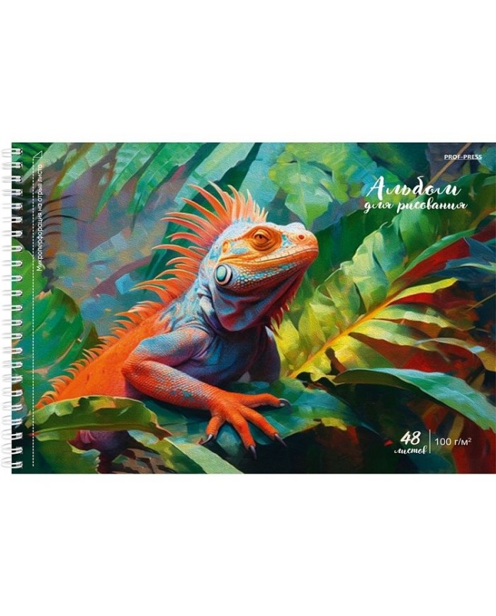 Альбом для рисования А3 48л. ЯРКАЯ ИГУАНА, гребень, офсет, микроперфорация