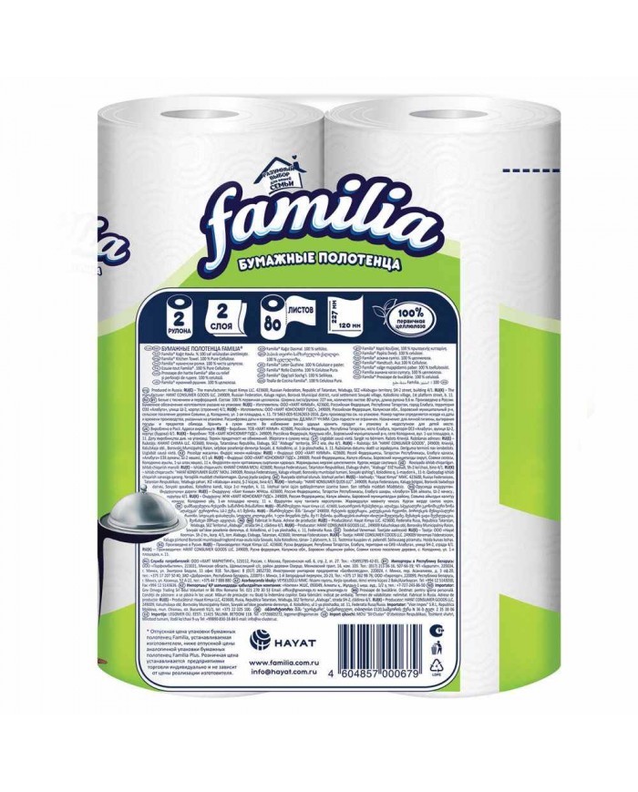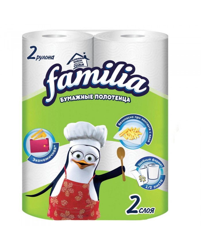 Полотенца бумажные двухслойные, 2 рулона (2 х 9,6 метра), FAMILIA "Радуга", отрыв 1/2 листа,