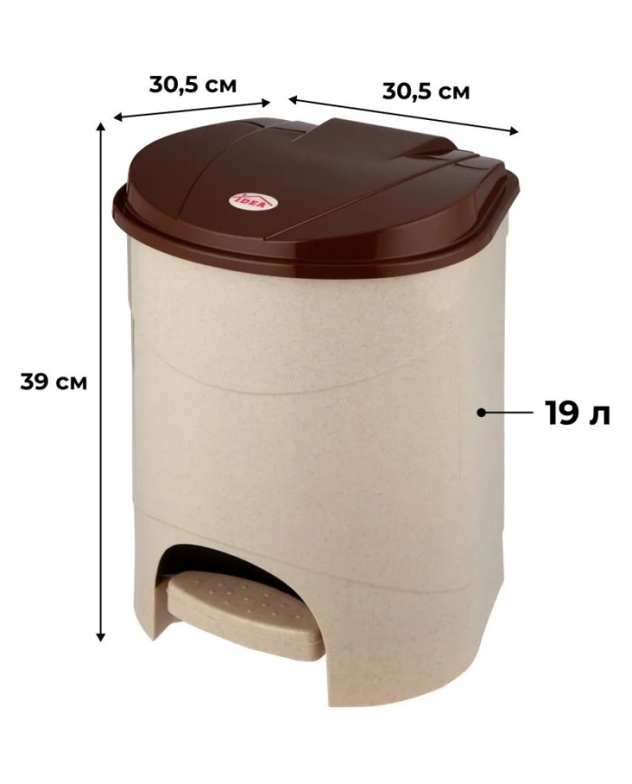 Ведро для мусора с педалью М-пластика 19 л пластик бежевое/коричневое (30.5х30.5х39 см). Прямоугольное ведро для мусора 'М-пластика' с педалью выполнено из высококачественного пластика, отвечающего всем нормам экологической безопасности. Благодаря привлекательному дизайну и прочному пластику может использоваться в офисах среднего звена, а также в бытовых помещениях. Отличительной особенностью урны является наличие педали открытия. Она позволяет не соприкасаться с конструкцией ведра при выбросе мусора, что позволяет избежать частого мытья рук. Крышка плотно закрывается, не допуская распространения запахов. На внутреннем ведре есть ручка для удобства использования. Размер контейнера: 30.5x30.5x39 см. Цвет: бежевый, коричневый. Вес: 1.4 кг. Внимание: в характеристике 'Объем рекомендуемого мешка' указан минимальный объем мешка, который подойдет для изделия. Рекомендуется приобретать мешки указанного, либо большего объема.