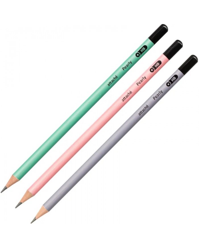 Карандаш чернографитный Attache Pearly, круглый, без ластика, ассорти, дерево