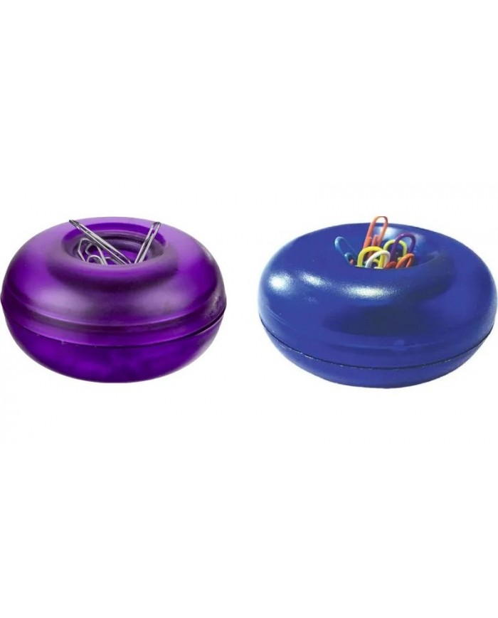 Магнитная скрепочница круглой формы выполнена из полупрозрачного пластика. Открытая конструкция облегчает извлечение скрепок, а встроенный магнит предотвращает их рассыпание. Вместительная и компактная одновременно. Верхняя часть открывается для загрузки. Скрепки в комплект не входят. Размер скрепочницы (ШхВ): 68х40 мм.Внимание! Товар поставляется в различных вариантах дизайна/цвета без возможности выбора.