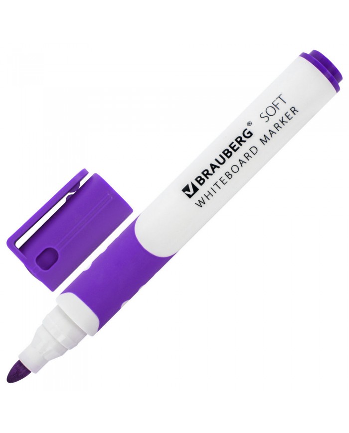 Маркер стираемый для белой доски ФИОЛЕТОВЫЙ, BRAUBERG "SOFT", 5 мм, резиновая вставка,