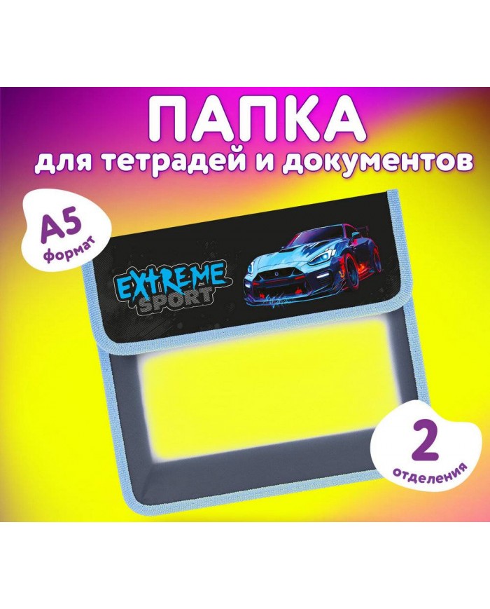 Папка для тетрадей ЮНЛАНДИЯ А5, пластик, 2 отделения, клапан на липучке, Extreme,