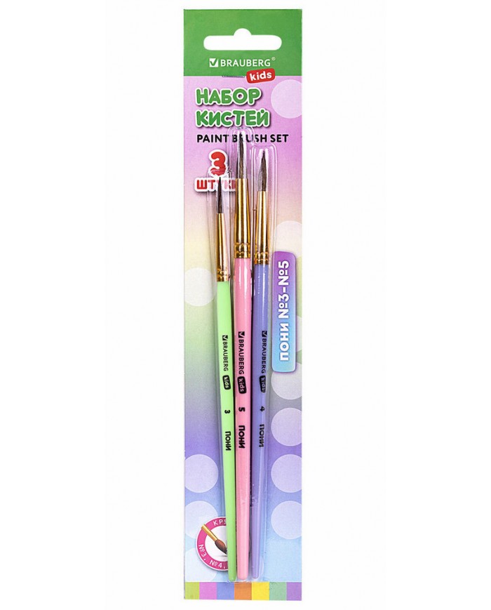 Кисти ПОНИ набор 3 шт. (круглые № 3, 4, 5), блистер, BRAUBERG KIDS