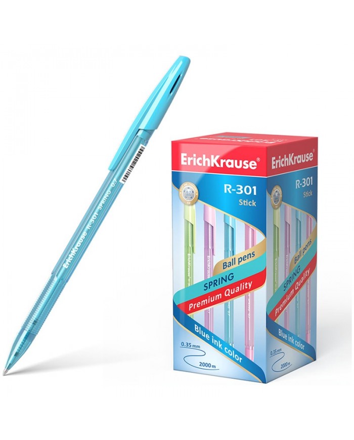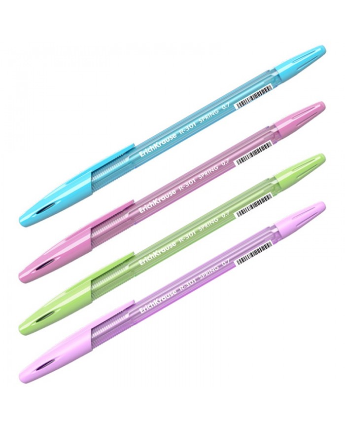 Ручка шариковая Erich Krause "R-301 Spring" синяя, 0,7мм, 140мм, корпус ассорти