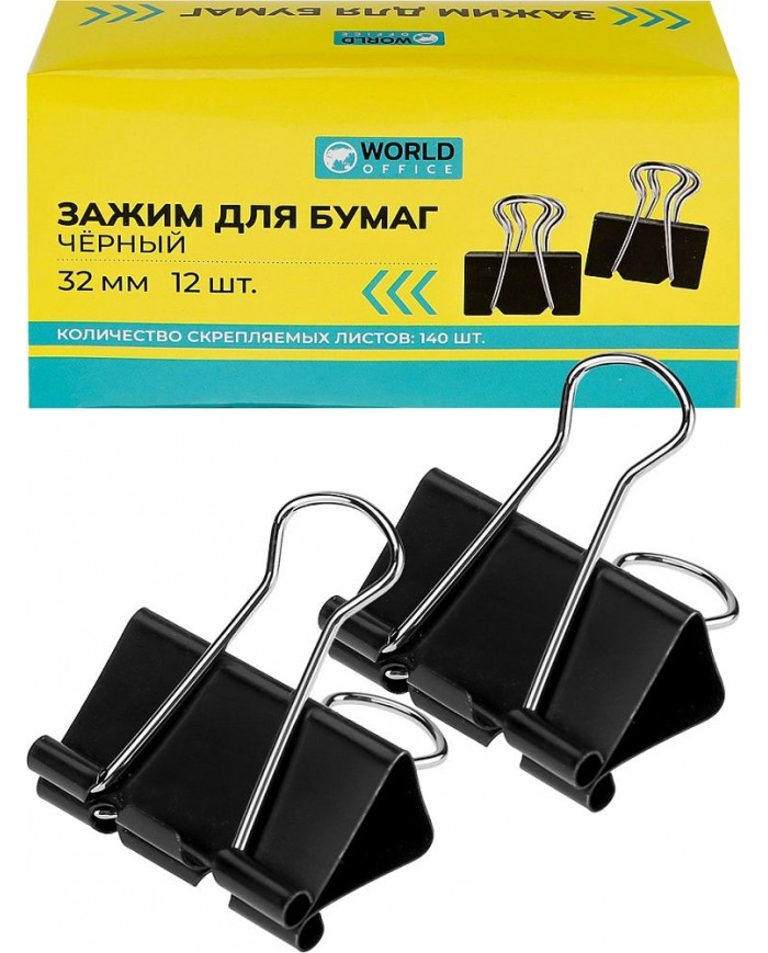 Зажим для бумаг ЧЕРНЫЙ, 32мм, (набор 12шт) в карт. Коробке