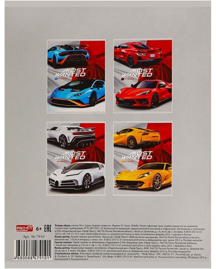 Тетрадь 96л., А5, клетка КОРОЛИ СКОРОСТИ (обл. - мелов.картон)