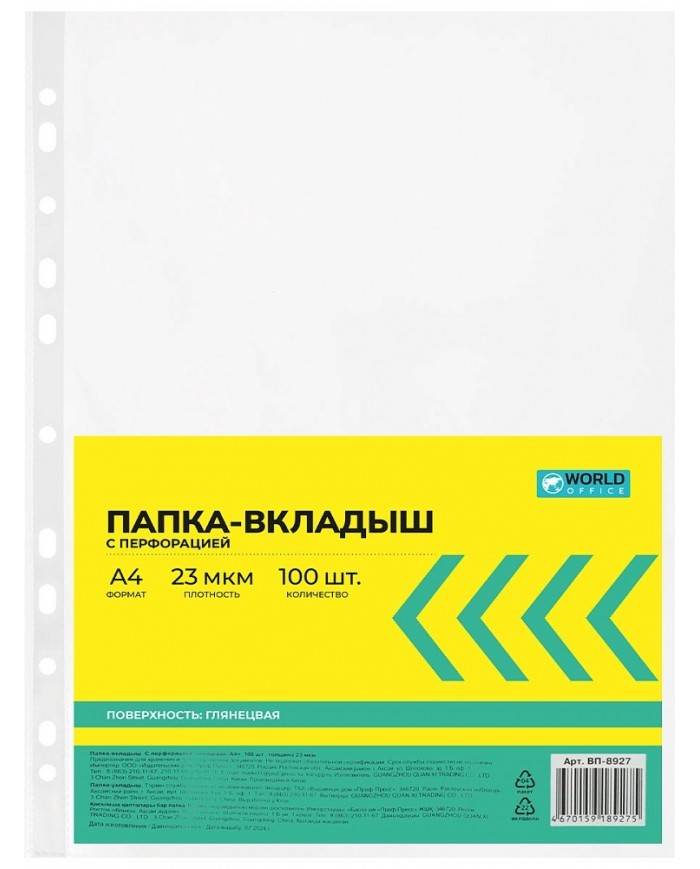 Папка-вкладыш с перфорацией А4+. Глянцевая, плотность 23 мкм, 100 штук. Файлы предназначены для хранения и транспортировки документов. Защищают документы от влаги, пыли и механических повреждений. Подходят для всех видов папок. Используются для сортировки документов.