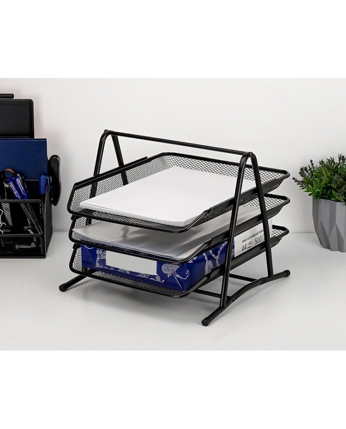 Лоток горизонтальный, металл, черный,3 секции, размер: 260*300*350 мм,