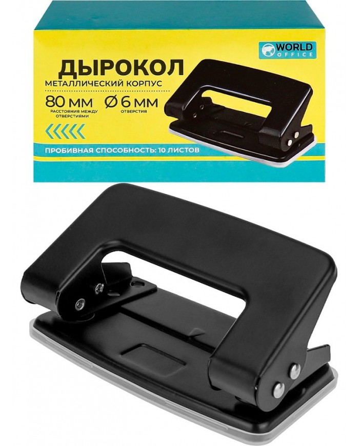 Дырокол на 10л., метал.корпус, в карт. коробке,