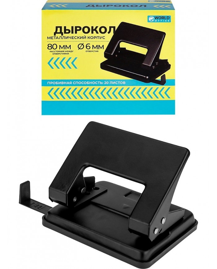 Дырокол на 20л., метал.корпус, в карт. коробке,