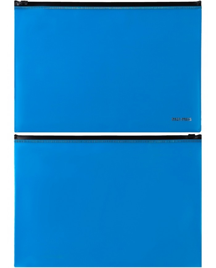 Папка-конверт на черной молнии, А4, 180мкм, СИНИЙ НЕОН