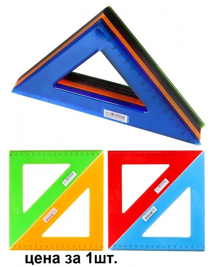 Треугольник ЦВЕТНОЕ ПРОЗРАЧНОЕ АССОРТИ 16 см. 45гр.