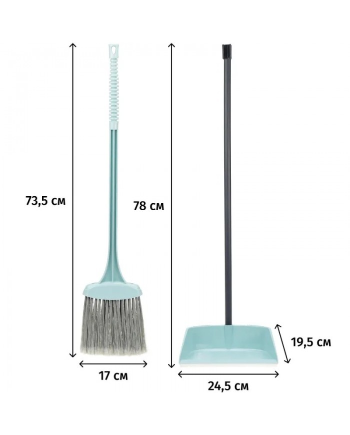 ?Набор для уборки Idea Ленивка (веник, совок с? ?длинной ручкой??)? ?Набор для уборки помещений Ленивка (с? ?веником) из? ?качественных износостойких материалов удобен для сухой уборки в? ?небольших помещениях. Подходит для всех покрытий, включая деликатный паркет и? ?ламинат, облегчает уборку в? ?труднодоступных местах??.? ?В? ?состав набора входит: веник и? ?совок с? ?длинной ручкой.? ?Вени??к?? в??ыполнен из? ?практичного материала, имеет ширину 17? ?см. Густая, распушённая щетина, достаточно компактна, чтобы подмести в? ?самых узких местах. Ручка обладает отверстием для подвеса и? ?ребристой поверхностью??.? ?Размер основания веника (толщина = глубина) - 3,3? ?см, длина щетины - 13,5? ?см, высота веника с? ?ручкой - 73,5? ?см??.? ?Материал ручки: пластик??.? ?Сово??к?? ??имеет прорезиненное основание, что обеспечивает более качественный сбор мусора. Поверхность совка сделана под уклоном? ?- это препятствует вываливанию мусора при заметании. В? ?ручке совка предусмотрен держатель для удобного и? ?компактного хранения веника??.? ?Размер совка: длина (глубина) - 19,5? ?см, ширина - 24,5? ?см, высота с? ?черенком - 78? ?см??.? ?Материал совка: пластик??.? ?Вес комплекта: 380? ?г??.?