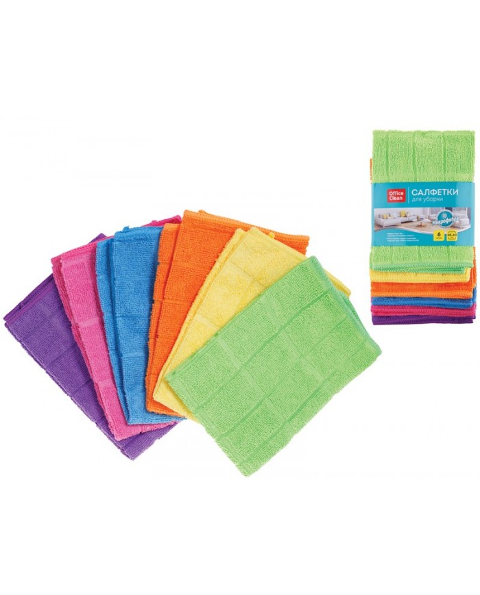 Салфетки для уборки OfficeClean "Универсальные", набор 6 шт., микрофибра, 40*40см, квадратное тиснен