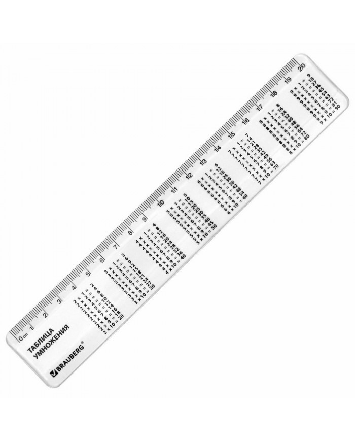 Линейка пластиковая 20 см, BRAUBERG, справочная, таблица умножения,