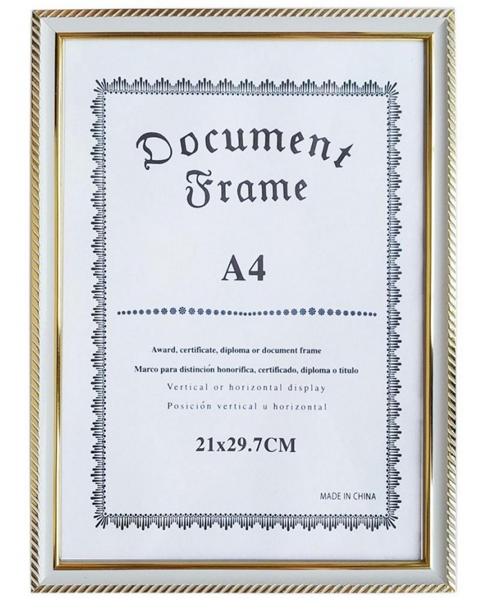 Рамка 21х29,7 пластиковая со стеклом, белая с двойной позолотой