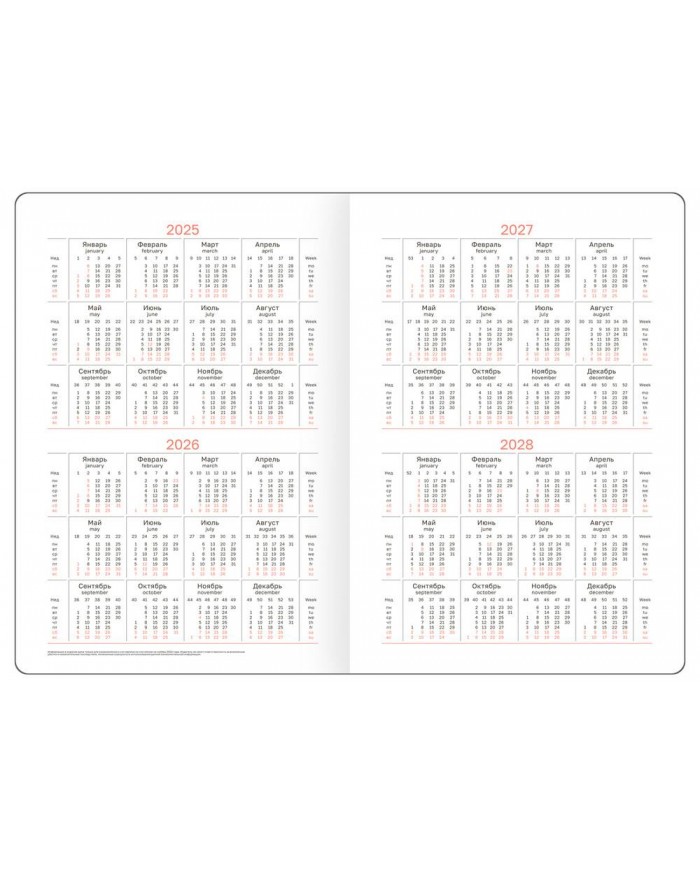 Перфорированные уголки и закладка-ляссе обеспечат комфорт и удобство при использовании ежедневника. В ежедневнике предусмотрена справочная информация, таблицы, календарь на 4 года и другие полезные сведения. Недатированный ежедневник подходит под персонализацию. Индивидуальная упаковка в термоусадочную пленку.