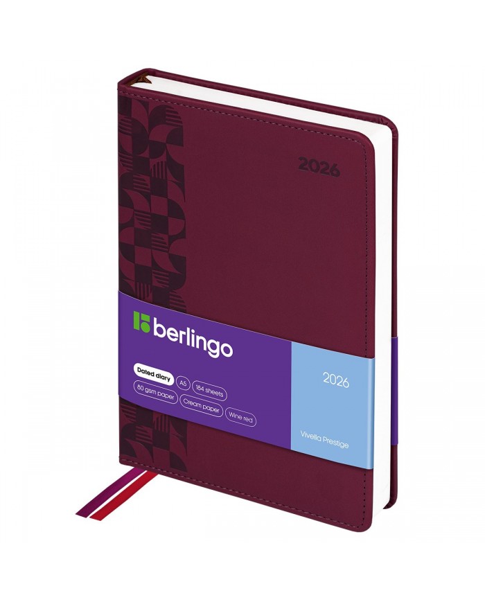 Датированный ежедневник на 2026 год Berlingo "Vivella Prestige" формата А5 идеален для повседневного использования. Размер — 150*215 мм. Модель представлена с твёрдой матовой обложкой из бордовой высококачественной экокожи. Имиджевое тиснение на обложке добавляет интересную деталь в классический дизайн.