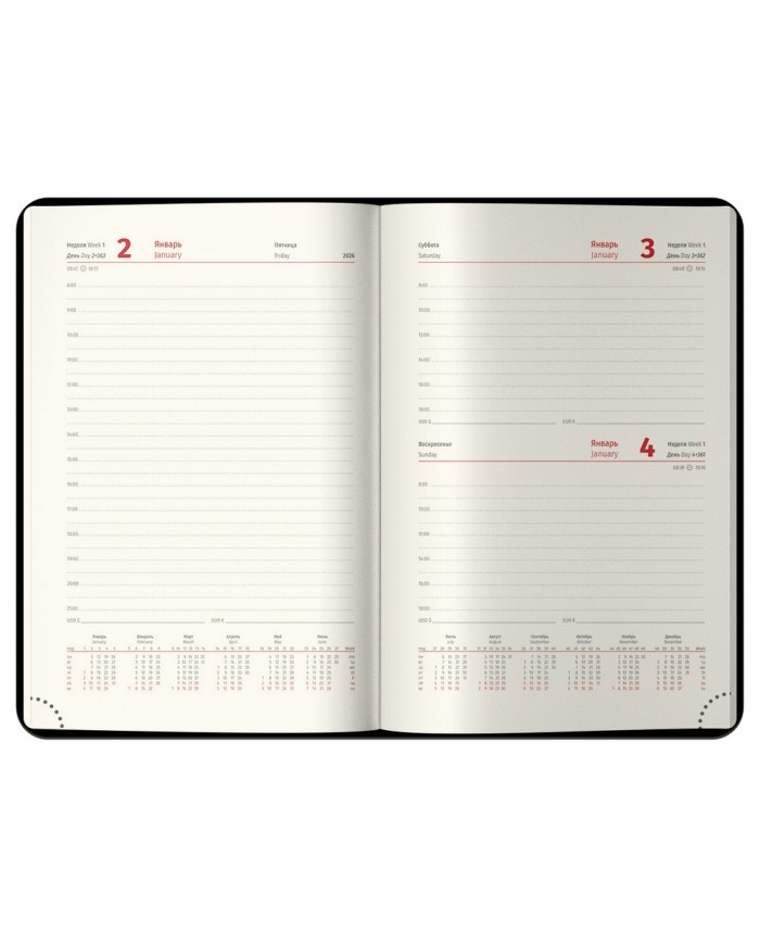 Перфорированные уголки страниц и две закладки-ляссе делают использование более комфортным. Приятное дополнение — три комплекта стикеров. Внутри размещены отрывные заметки, бланки извещения о ДТП и справочные материалы. Датированный ежедневник подходит под персонализацию. Изделие помещено в индивидуальную упаковку, что гарантирует его целостность и сохранность.