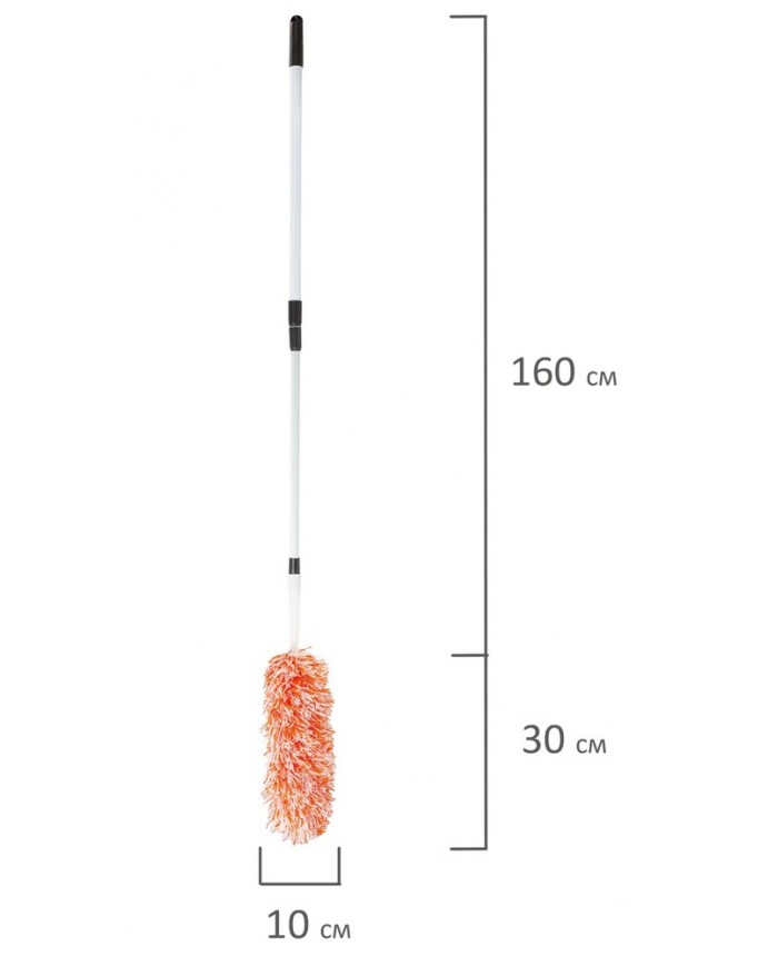 Пышная и мягкая щетина сметки, выполненная из микрофибры/полиэстера, обладает антистатическими свойствами и позволяет эффективно удалять пыль с различных поверхностей. Регулируемая телескопическая ручка с максимальной длиной 160 см позволяет дотянуться до самых труднодоступных мест. Для сохранения антистатических свойств ворсинок, рекомендуется периодически промывать сметку водой. Цвет сметки: оранжевый. Упаковка - прозрачный герметичный пакет (запайка) - позволит сохранить внешний вид при транспортировке и хранении. Щетка для уборки пыли из микрофибры пипидастр - отличный помощник любой хозяйки. Щетки для уборки мелкого бытового мусора с подоконников, шкафов, телевизоров не оставляют разводов. Электростатическая щетка для пыли с мягким ворсом молниеносно удаляет даже самую мелкую пыль с плазмы, клавиатуры и пианино. Мыть ее следует без мыла в теплой воде. Чтобы метелка для пыли восстановила свои свойства вода должна быть около 30-40 градусов. А в случае, если щетка для уборки пыли потеряла свои электростатические свойства, необходимо помыть ее с шампунем и после высыхания натереть об полиэтиленовый пакет или шерсть. Когда стоит задача генеральной уборки, в дело идет метелка для уборки труднодоступных мест, она поможет смахнуть пыль со шкафов, вычистить промежутки между стеной и шкафом. Для кухни нужна щетка сметка с ручкой, которая позволяет эффективно очищать труднодоступные места, а также углы и ниши в шкафчиках, вытяжку и вентиляцию на кухне. Щетка от пыли сметает пыль с мебели, батарей, окон, зеркал, наличников дверей. Сметка для пыли с ручкой изготовлена из мягкого пушистого волокна 80 мкм, она притягивает пыль любых размеров, на нее можно намотать паутину, почистить любое место в квартире. Раньше люди использовали веник для уборки пыли, но он разгонял все по дому, и слои пыли снова появлялись на телевизоре и поверхностях. Сейчас же появились новые материалы, в том числе и щетка для уборки с ручкой. Если вы автовладелец и в автомобиле есть загрязнения в салоне, то щетка для салона авто сметка для торпеды уберет пыль с кресел. Как правильно писать - пепидастр или пипидастр - не важно, главное, чтобы шетка для пыли тряпка была из качественных материалов и долго служила. Щетка для радиатора, как и тряпка для пыли, нужна в каждом доме. Щетка для батареи за пару взмахов очистит любой радиатор без разводов и подтеков.