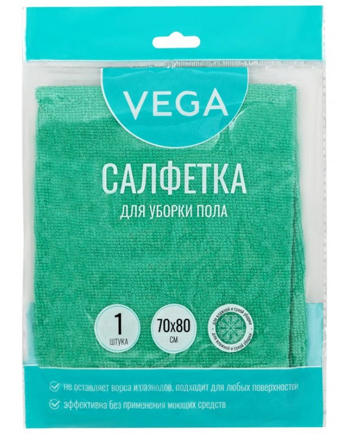 Салфетка для мытья пола Vega, микрофибра, 70*80см, Плотность: 180 гр/кв.м.