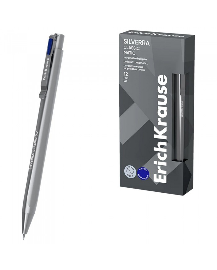 Ручка шариковая автоматическая ERICH KRAUSE "Silverra Matic Classic", СИНЯЯ, линия 0,35 мм,