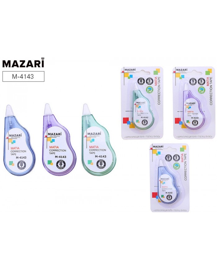 Корректирующая лента-роллер MATIA, 5мм x 8м, 3 цвета корпуса в ассортименте, блистер
