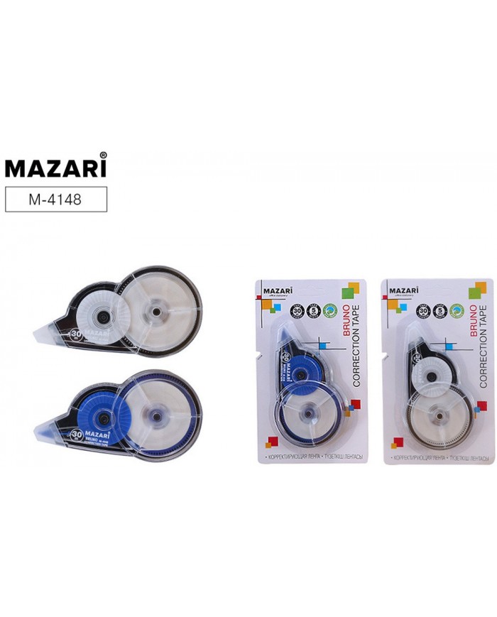 Корректирующая лента-роллер BRUNO, 5мм x 30м, 2 цвета корпуса в ассортименте, блистер