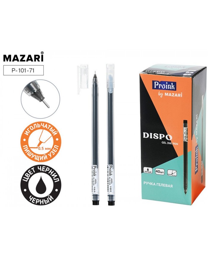 Ручка гелевая DISPO, ЧЕРНАЯ, игольчатый пишущий узел 0.5 мм, корпус пластиковый прозрачный, одноразо