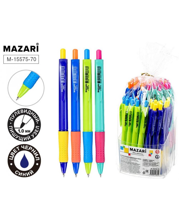 Ручка шар.авт. DARING, СИНЯЯ, пиш.узел 1.0мм, корпус пластик.цветной, с мягким грипом из синт.каучук